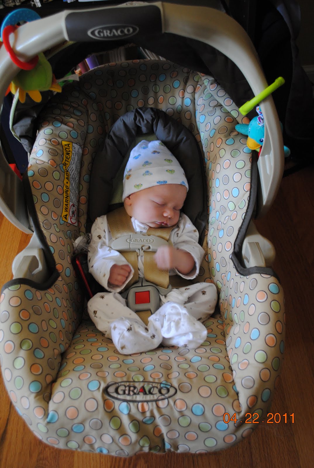Today we had a big outing with going to get his birth certificate, going to Target and to Vitamin Cottage. He did really well, and slept most of the time. We did have a feeding and diaper change in Target parking lot but he didn't seem to mind. Every time we go out it gets easier and easier. We probably won't go out again until Friday for his two week appointment, I am excited to see how much he has grown!